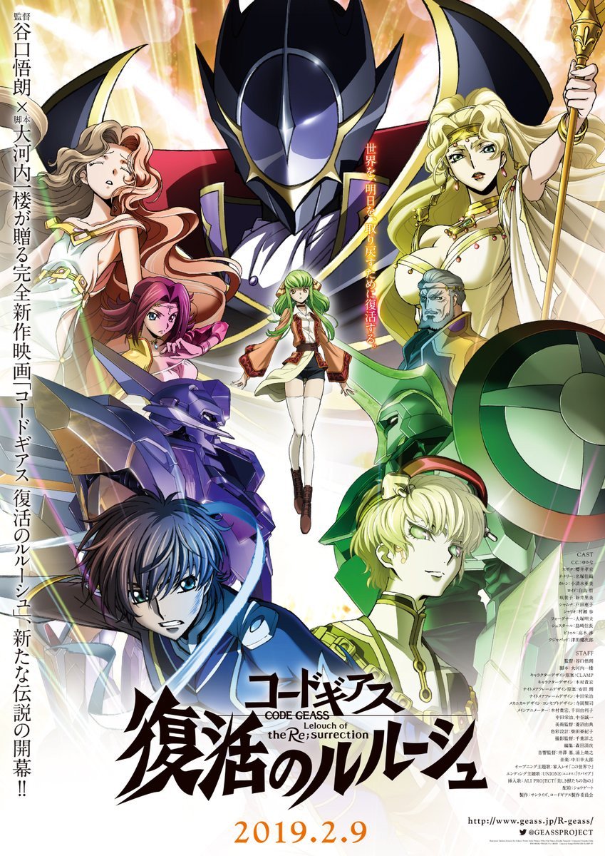 2006から08年にかけて計2シーズンがテレビ放送され、17~18年にはテレビシリーズを再構成した劇場版3部作が公開された人気アニメ「コードギアス 反逆のルルーシュ」の完全新作劇場版。「ギアス」と呼ばれる特殊な力を手にした主人公のルルーシュが、世界に対する反逆の狼煙を上げる様を描いたテレビシリーズおよび劇場版3部作のその後の物語を、谷口悟朗監督や脚本の大河内一楼らオリジナルスタッフ&キャストが再結集して描いた。再編成された超合集国を中心に世界がまとまり、平和な日々が訪れていた光和2年。難民キャンプの慰問に訪れていたナナリーと、仮面の男「ゼロ」として彼女に同行していたスザクが、何者かに連れ去れらる事件が発生。事件を解明するため、シュナイゼルの密命を受けて「戦士の国」と呼ばれるジルクスタン王国に潜入していたカレン、ロイド、咲世子が、謎のギアス使いに襲われる。そして、その場には何かを求めて世界をめぐっていたC.C.の姿があった。